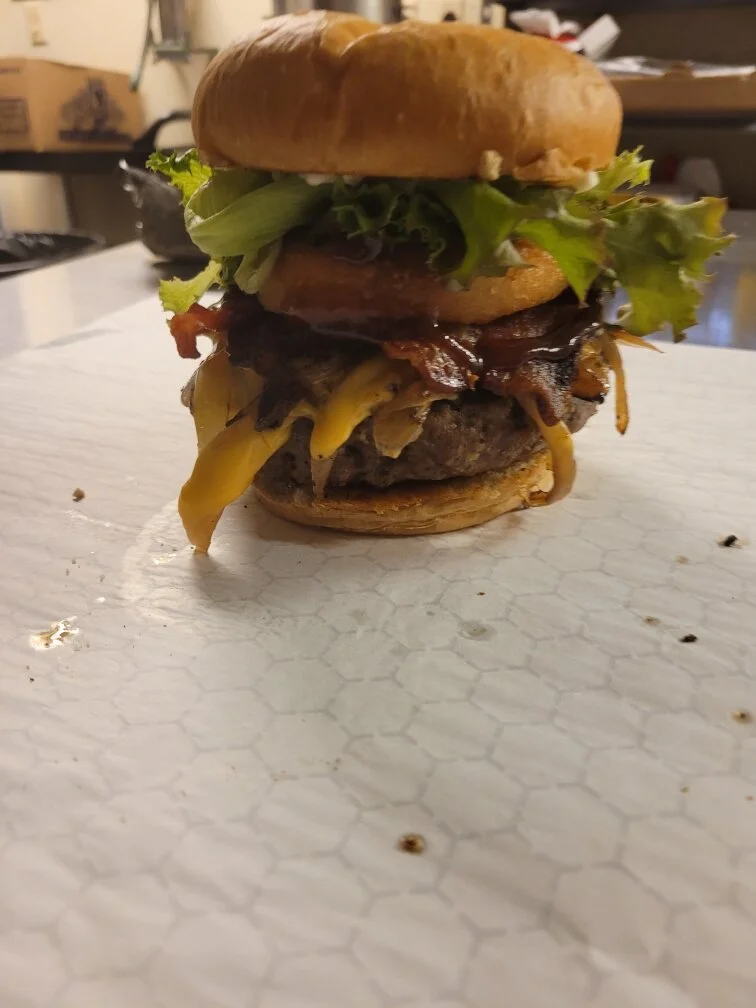 BOGO ½ OFF SIRLOIN CHEESEBURGER WITH THE WORKS SERVED WITH CHIPS 2 FOR $17 WITH FRIES 2 FOR $20